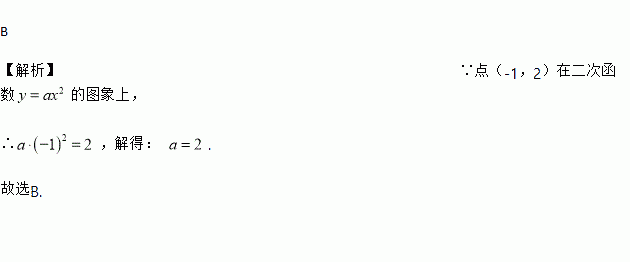 已知点(-1,2)在二次函数y=ax2的图象上,那么a的值是( )