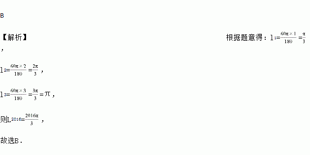 如图,六边形ABCDEF是正六边形,曲线FK1K2K3K4K5K6K7…叫做“正六边形的渐开线”,其中弧FK1,弧K1K2,弧K2K3,弧K3K4,弧K4K5,弧K5K6,…的圆心依次按点A,B,C,D,E,F循环,其弧长分别记为L1,L2,L3,L4,L5,L6,….当AB=1时,L2016等于( )