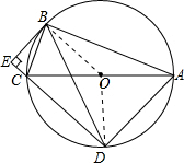 如图,⊙O是Rt△ABC的外接圆,∠ABC=90°,弦BD=BA,AB=12,BC=5,BE⊥DC交DC的延长线于点E.