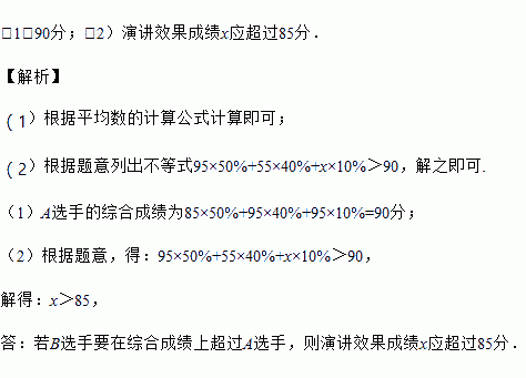 (2)若B选手要在综合成绩上超过A选手,则演讲效果成绩x应超过多少分?