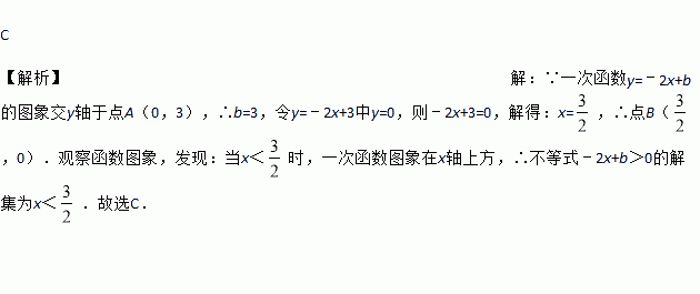 如图,若一次函数y=-2x+b的图象交y轴于点A(0,3),则不等式-2x+b>0的解集为( )