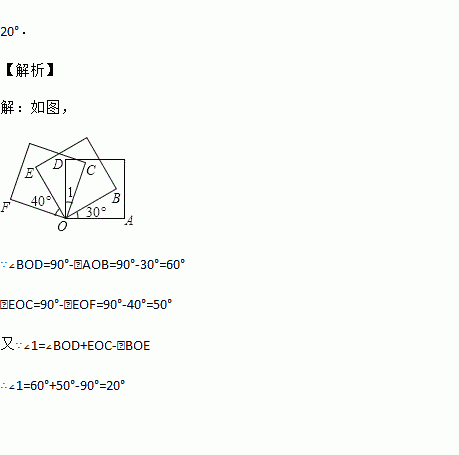 如图,将三个同样的正方形的一个顶点重合放置,那么∠1的度数为________.