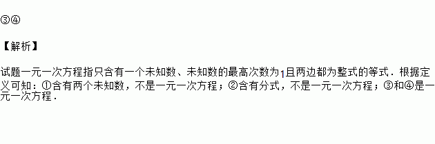在下列方程中:①x+2y=3,②,③,④,是一元一次方程的有__________(只填序号).