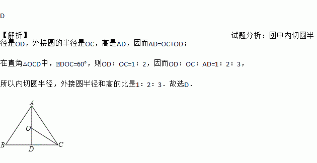 已知等边三角形的内切圆半径,外接圆半径和高的比是( )