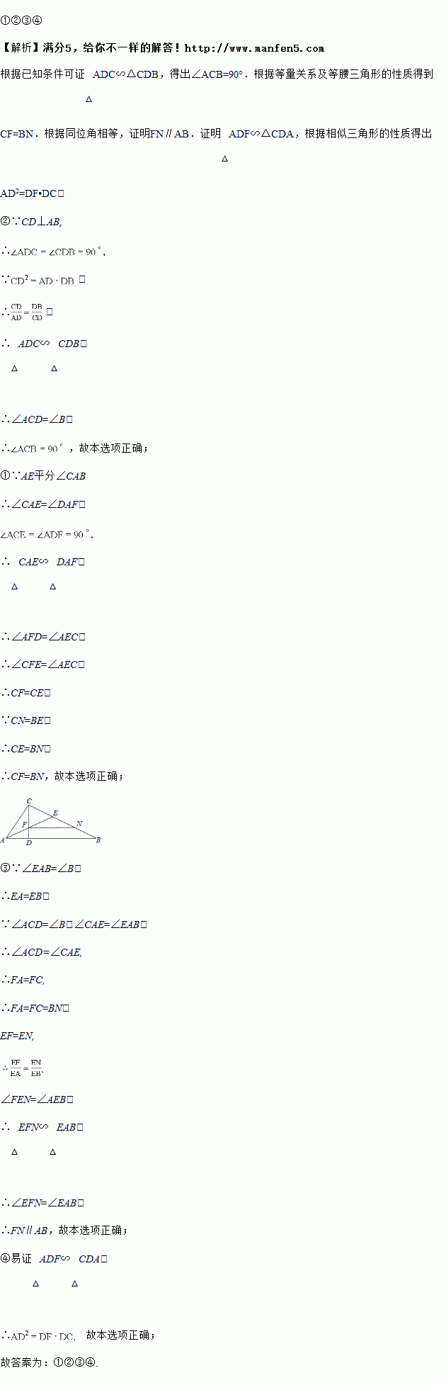 如图,在中,,且,平分交于,,.①;②;③;④.则下列结论正确的是________.