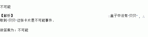2008年北京奥运会的吉祥物是“贝贝”、“晶晶”、“欢欢”、“迎迎”、“妮妮”等五个福娃,现将三张分别印有“欢欢”、“迎迎”、“妮妮”这三个吉祥物图案的卡片(卡片形状、大小一样,质地相同)放入一个盒中,小明从盒中任取一张,取到“贝贝”这张卡片是_____事件(填“必然”或“不可能”或“随机”).