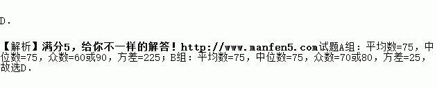 已知组四人的成绩分别为90、60、90、60,组四人的成绩分别为70、80、80、70,用下列哪个统计知识分析区别两组成绩更恰当( )