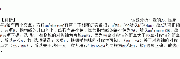 D. 关于x的一元二次方程ax2+bx+c=﹣4的两根为﹣5和﹣1
