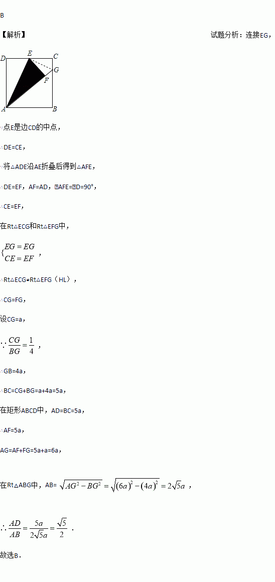 如图,在矩形ABCD中,点E是边CD的中点,将△ADE沿AE折叠后得到△AFE,且点F在矩形ABCD内部.将AF延长交边BC于点G.若,则=( )