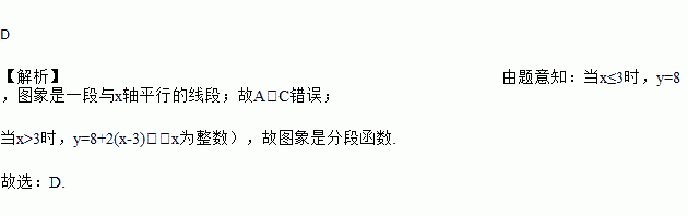 某地出租车计费方式如下:3 km以内只收起步价8元,超过3 km的除收起步价外,每超出1 km另加收2元;不足1 km的按1 km计费.则能反映该地出租车行驶路程x(km)与所收费用y(元)之间的函数关系的图象是( )