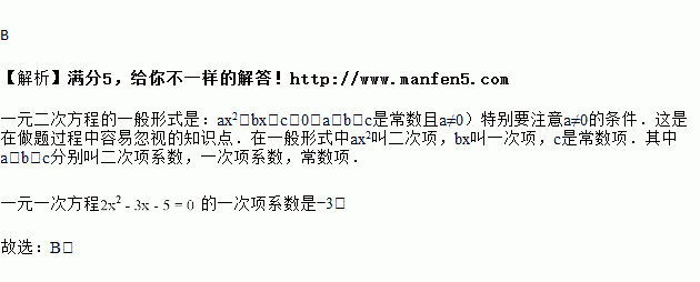 一元二次方程的一次项系数是( )
