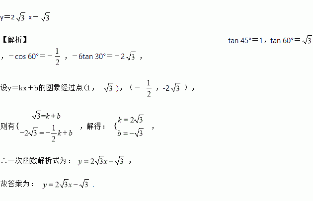 一次函数的图象经过点(tan 45°,tan 60°)和(-cos 60°,-6tan 30°),则此一次函数的表达式为________.