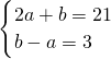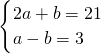 分析:设等腰三角形的腰长为a,底边长为b,则2a+b=21,由a-b=3或b-a=3,分类求解.