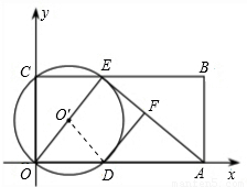 如图,在平面直角坐标系中,矩形ABCO的面积为15,边OA比OC大2.E为BC的中点,以OE为直径的⊙O′交x轴于D点,过点D作DF⊥AE于点F.(1)求OA、OC的长;