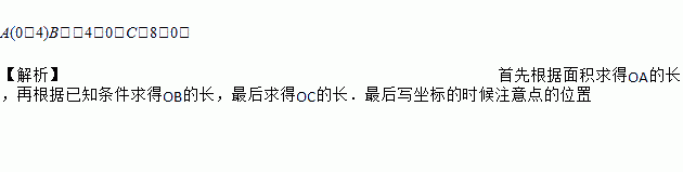 已知,如图在平面直角坐标系中,S△ABC=24,OA=OB,BC=12,求△ABC三个顶点的坐标.