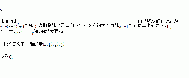 对于抛物线y=﹣(x+1)2+3,下列结论: