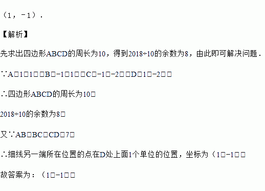 如图,在平面直角坐标系中:A(1,1),B(-1,1),C(-1,-2),D(1,-2),现把一条长为2 018个单位长度且没有弹性的细线(线的粗细忽略不计)的一端固定在点A处,并按A→B→C→D→A→…的规律紧绕在四边形ABCD的边上,则细线另一端所在位置的点的坐标是________.