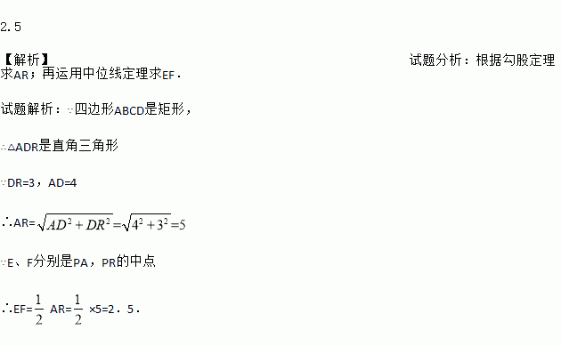 如图,已知矩形ABCD,P、R分别是BC和DC上的点,E、F分别是PA,PR的中点.如果DR=3,AD=4,则EF的长为_____.