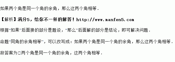 把命题“同角的余角相等”改写成如果________,那么________.