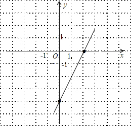分析:一次函数图象是直线,首先计算出x=0时,y=-4,y=0时,x=2,则直线必过(0,-4),(2,0),过此两点画直线即可.