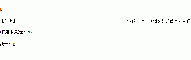 6的相反数是( )