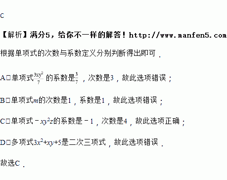 B. 单项式的次数是1,没有系数![]()