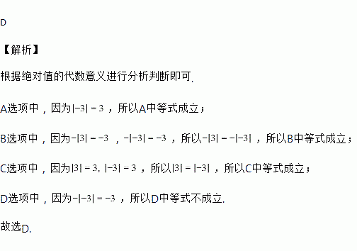 A. |-3|=3 B. -|3|=-|-3| C. |3|=|-3| D. -|-3|=3