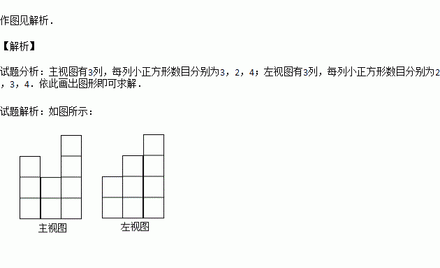 如图,这个由小立方块塔成的几何体的俯视图,小正方形中的数字表示该位置的小立方块的个数.请你画出它的主视图与左视图.![]()
