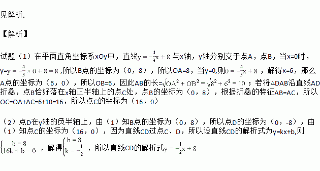 x+8与x轴,y轴分别交于点A,点B,点D在y轴的负半轴上,若将△DAB沿直线AD折叠,点B恰好落在x轴正半轴上的点C处.