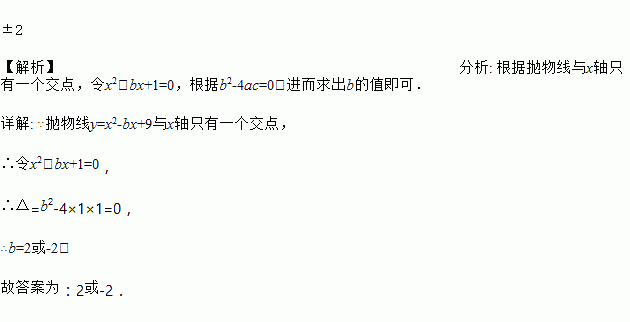 若二次函数y=x2-bx+1的图像与x轴只有一个交点,则b的值是 _________.