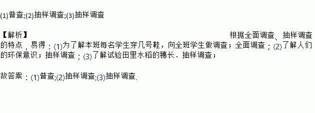 (1)为了解本班每名学生穿几号鞋,向全班学生做调查;