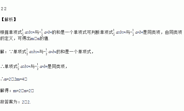 两个单项式 与 的和是一个单项式,那么______,____。
