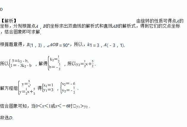 如图,在平面直角坐标系中,A(-3,1),以点O为直角顶点作等腰直角三角形AOB,双曲线