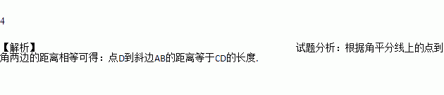 Rt△ABC中,∠ C=90°,AD平分∠BAC,交BC于点D,CD=4,则点D到AB的距离为_______.