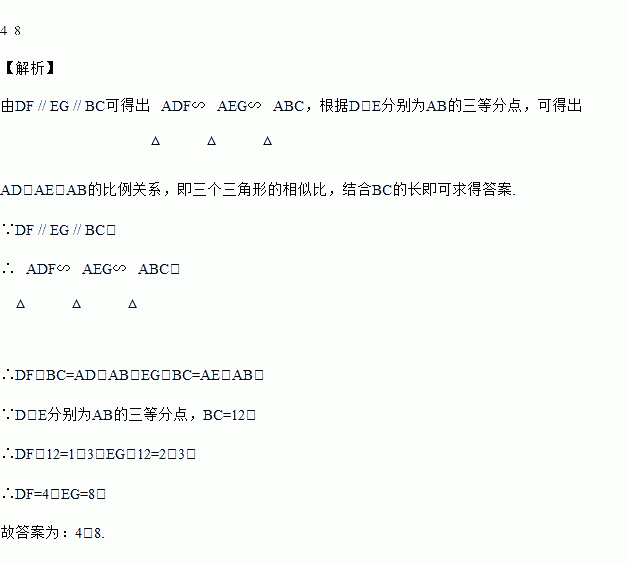 如图,,分别为的三等分点,,若,则________,________.
