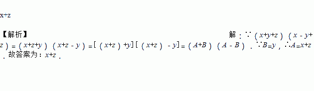 若(x+y+z)(x-y+z)=(A+B)(A-B),且B=y,则A=_________________.