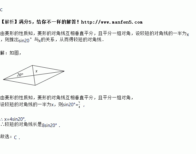 菱形的边长为,有一个内角,则较短的对角线是( )