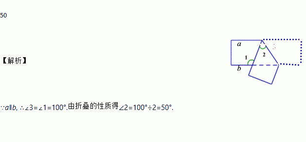 如图所示,是用一张长方形纸条折成的.如果∠1=100°,那么∠2= 度.