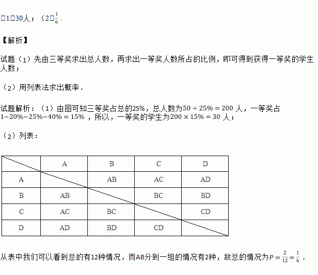 (1)获得一等奖的学生人数;