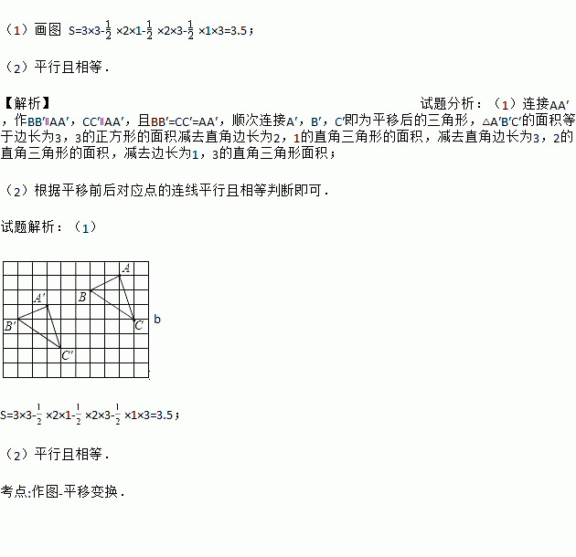 (1)请画出平移后的△A′B′C′,并求△A′B′C′的面积;