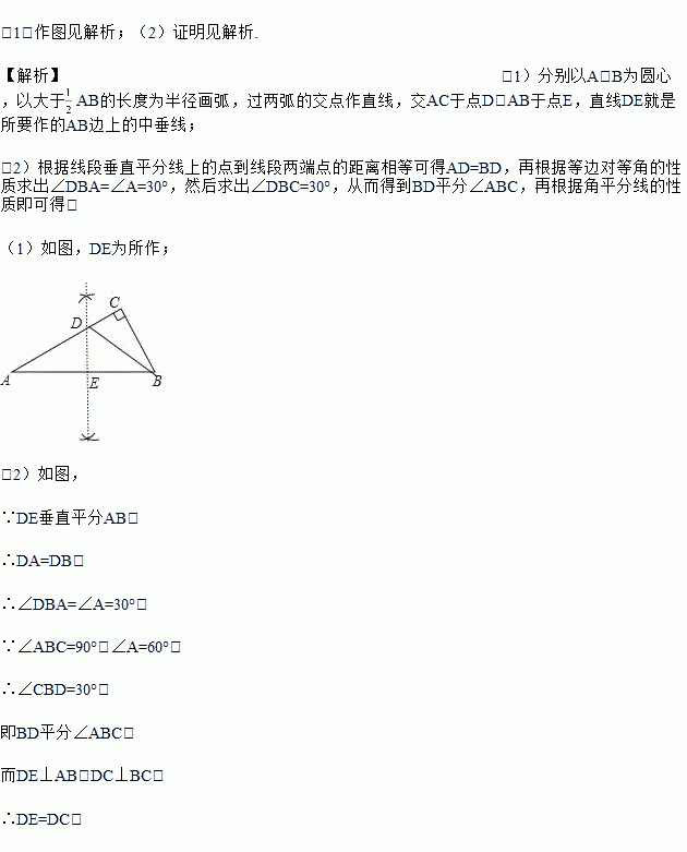 (1)用尺规作图作AB边上的垂直平分线DE,交AC于点D,交AB于点E.(保留作图痕迹,不要求写作法和证明)