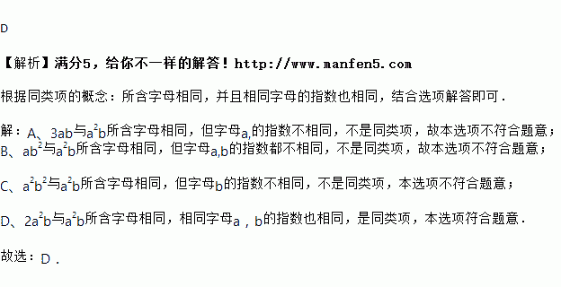下列单项式中,与是同类项的是