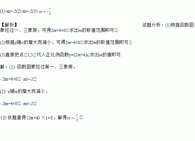 (3)m为何值时,点(1,3)在该函数的图象上?