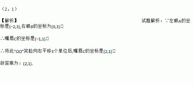 如图,把“QQ”笑脸放在直角坐标系中,已知左眼A的坐标是,右眼B的坐标为,则将此“QQ”笑脸向右平移3个单位后,嘴唇C的坐标是______.