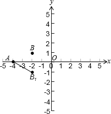 (2)将线段AB沿AB1方向平移,使A与B1重合,画出图形并写出B点对应点B2坐标;