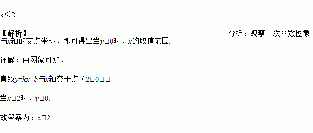 已知直线y=kx+b如图所示,当y<0时,x的取值范围是________.