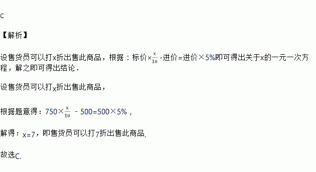 某商品的进价是500元,标价是750元,商店要求以利润率为5%的售价打折出售,售货员可以打几折出售此商品( )