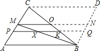 解:以BC为对角线作平行四边形ABDC,延长PK交BD于Q,过M作AB的平行线交CB于O,交BD于N,则AB=QP=NM,