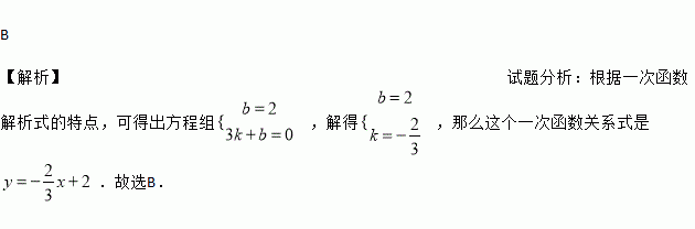 若直线y=kx+b经过A(0,2)和B(3,0)两点,那么这个一次函数的关系式是( )