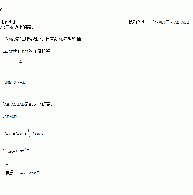如图,在△ABC中,AB=AC,AD是BC边上的高,点E、F是AD的三等分点,若△ABC的面积为12,则图中阴影部分的面积是______